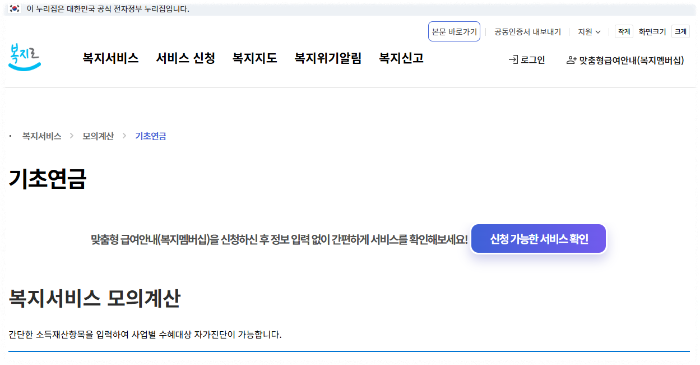 복지로 사이트에 방문하시면 간단하게 내가 받을 수 있는 기초연금을 계산해 볼 수도 있습니다.